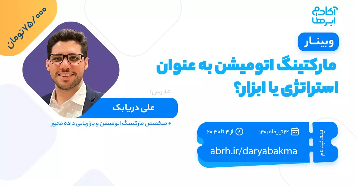 علی دریابک، متخصص مارکتینگ آتومیشن در این وبینار قصد دارد بگوید از مارکتینگ آتومیشن به عنوان ابزار استفاده کنیم یا استراتژی؟